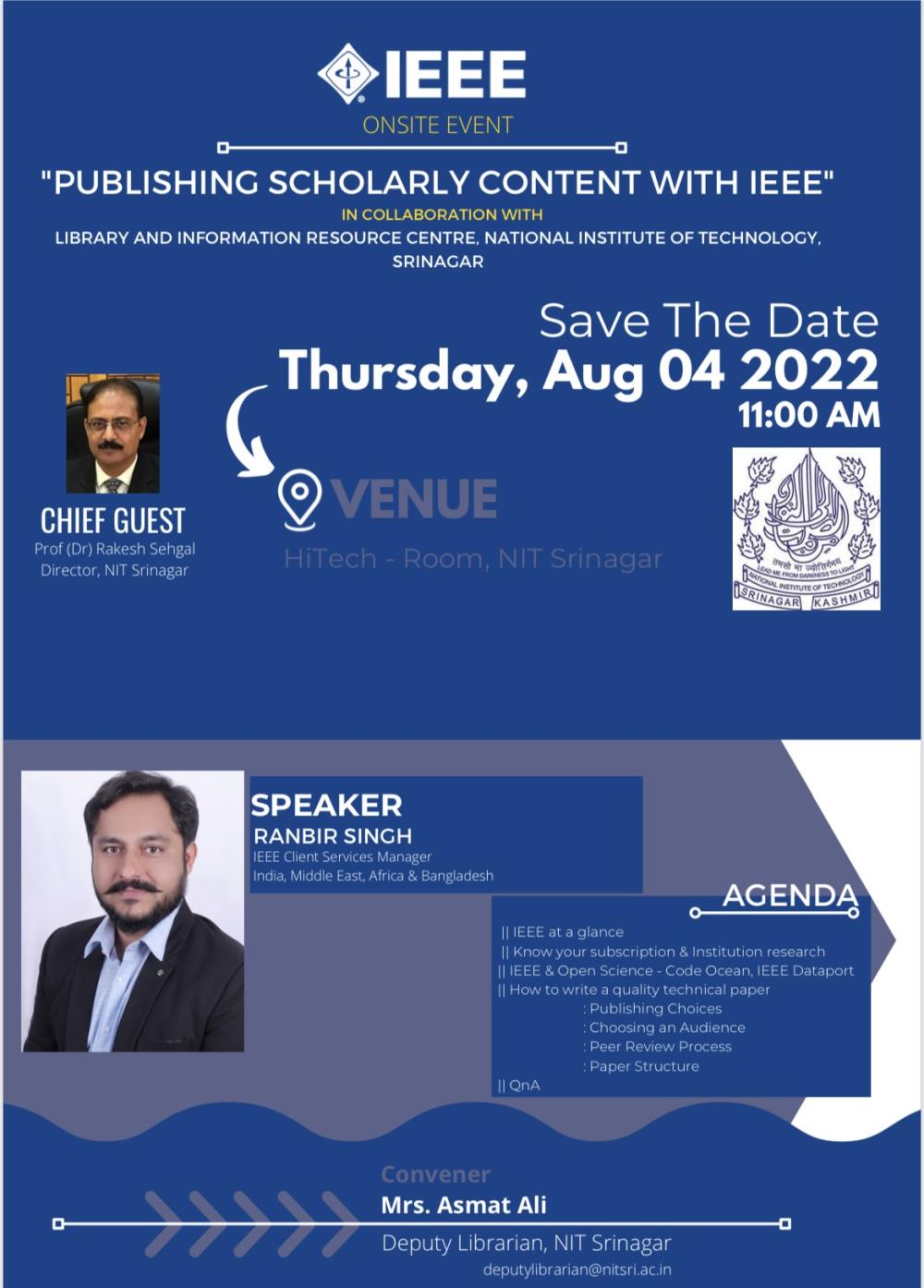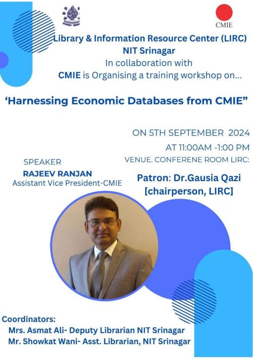 The history of LIRC dates back to 1960 with the inception of National Institute of Technology. NIT Srinagar Library supports Teaching, Research & and other related programmes of the Institute. The Library has a good collection of a 74769 documents that comprises of Books, Journals, Thesis, Video cassettes, Learning Resources (LRs) & Compact discs in the field of Engineering, Science, Management, Literature & Humanities.
