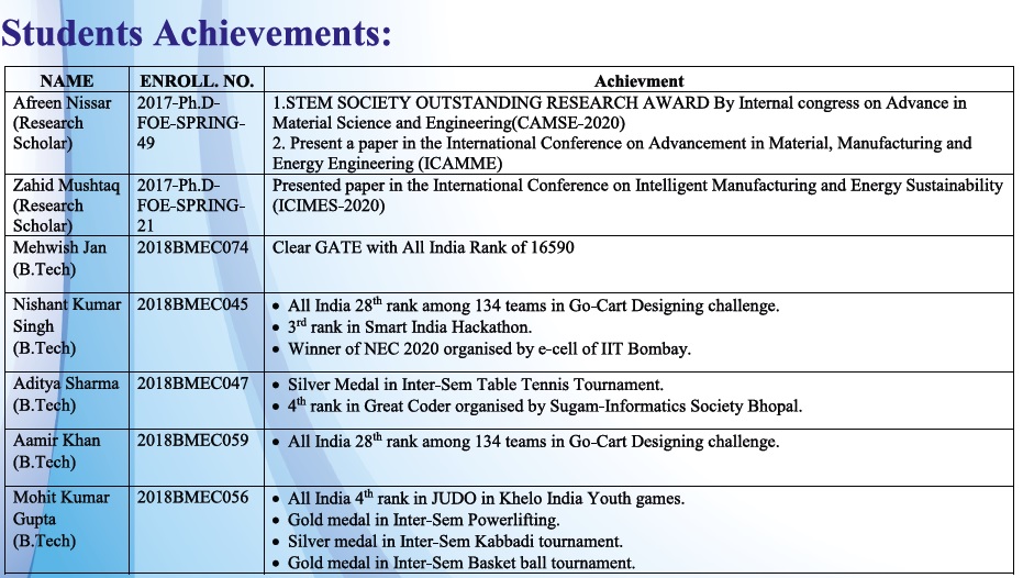 • Student Achievements